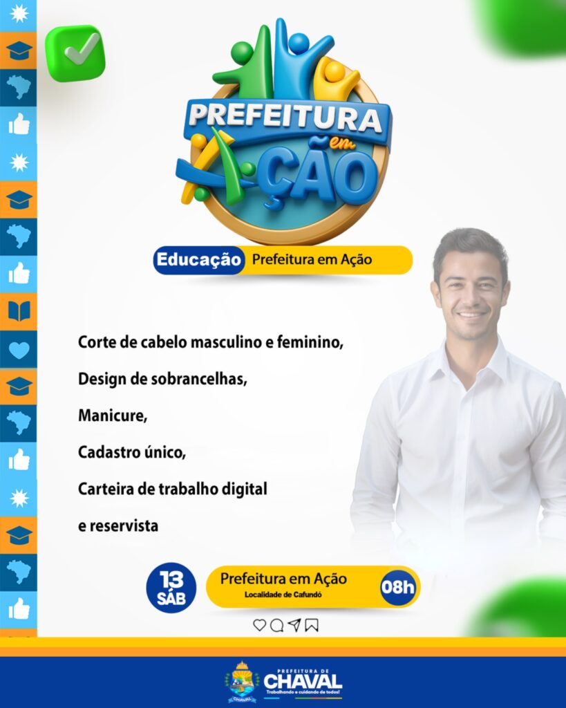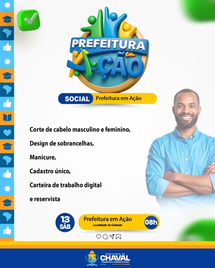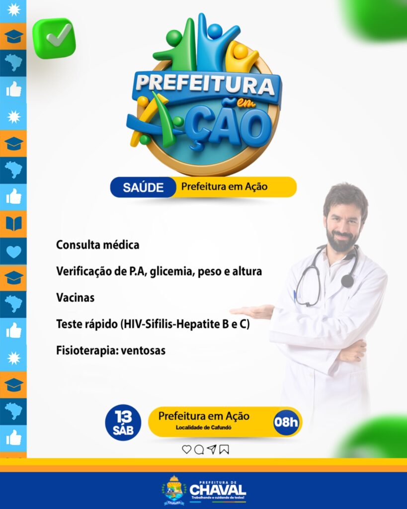 📅 Neste sábado, dia 13, a Prefeitura Municipal de Chaval leva mais serviços, saúde, lazer e cidadania para você e sua família!