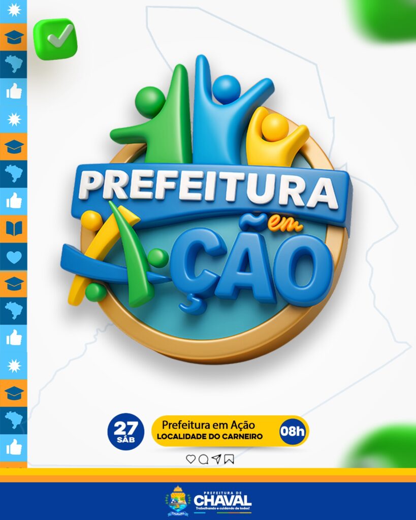 Neste sábado, dia 27, a partir das 8h da manhã, a Prefeitura Municipal de Chaval estará mais uma vez perto de você, levando serviços que normalmente são ofertados na sede diretamente para a comunidade. ✅ Saúde✅ Educação✅ Assistência Social✅ E muito mais! É a gestão presente, trabalhando e cuidando de todos. 💙 📍 Localidade do Carneiro🗓️ Sábado, […]
