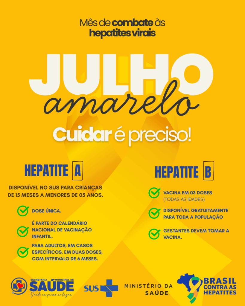 🎗️ JULHO AMARELO – MÊS DE CONSCIENTIZAÇÃO SOBRE AS HEPATITES VIRAIS Durante o mês de julho, a Secretaria Municipal de Saúde reforça a importância da prevenção, diagnóstico precoce e tratamento das hepatites virais, doenças que muitas vezes não apresentam sintomas, mas podem causar sérios danos ao fígado. ✅ As vacinas contra a Hepatite A e B estão disponíveis gratuitamente […]