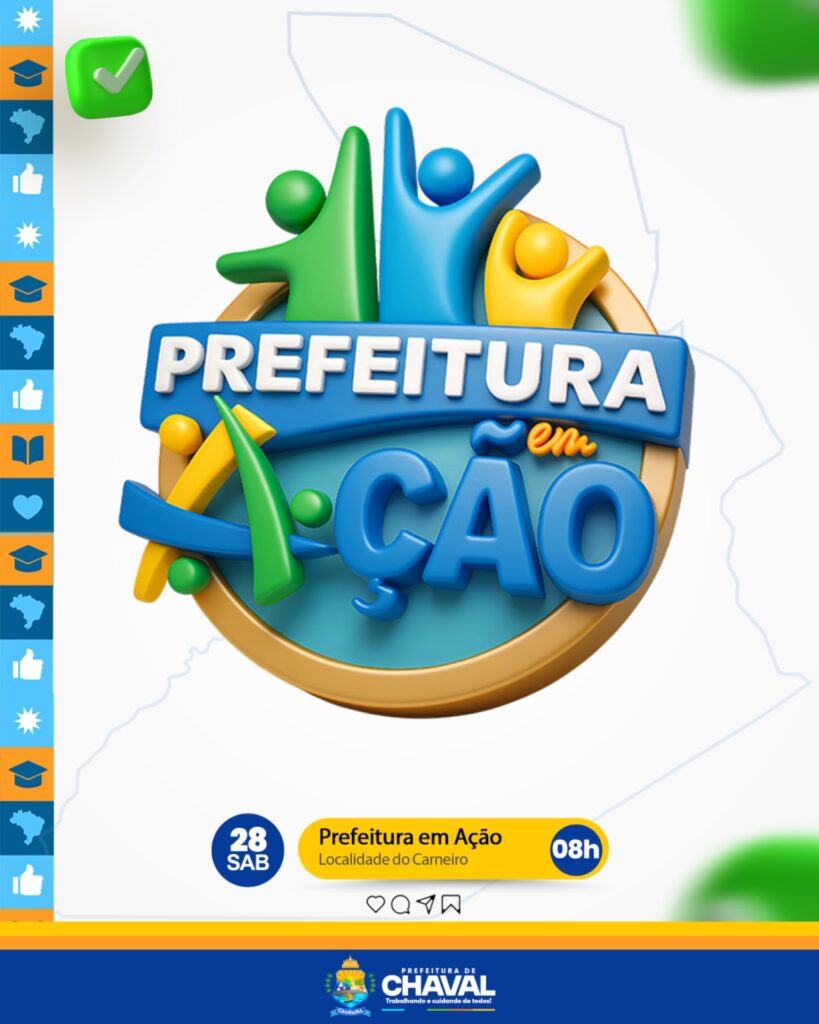 📢 É NESTE SÁBADO, 28 DE JUNHO! 🤝 A Prefeitura Municipal de Chaval convida toda a população para mais uma edição do “Prefeitura em Ação”, desta vez na localidade do Carneiro! 🌟 Um dia especial de serviços gratuitos, cidadania e cuidado com a população! ✅ AÇÕES OFERECIDAS: 📌 Secretaria de Assistência Social✂️ Corte de cabelo (masculino e feminino)💅 Design de sobrancelhas […]