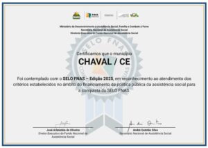 O município de Chaval-CE acaba de alcançar uma importante conquista: o Selo FNAS, um reconhecimento nacional que destaca a qualidade da gestão dos recursos da Assistência Social.