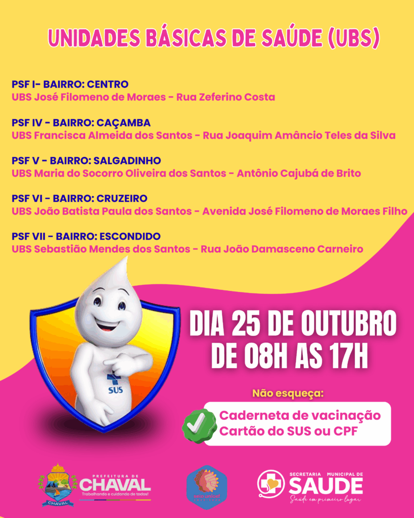 Locais de vacinação: Unidades Básicas de Saúde do Centro, Caçamba, Salgadinho, Cruzeiro e Escondido.